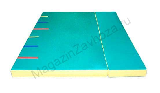 Изделие состоит из двух отдельных матов не скрепленных между собой. Они выполнены из упругого поролона, который позволяет гасить силу удара при падении или соскоке со спортивного снаряда.