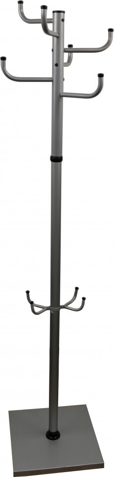 Вешалка напольная Мажор-1 выполнена из оцинкованной стали с полимерным покрытием, утяжеленной квадратное основание, 6 крючков из трубы диаметром 16 мм для верхней одежды равномерно распределены по окружности стойки диаметром 38 мм. Снабжена держателем для зонтов и сумок.Поставляется в разобранном виде, в картонной таре.