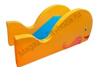 Размер (см): 200*70*90. Модульная горка "Кит" представляет собой сборную конструкцию, состоящую из горки и стилизованных боковых стенок. Аппликация на боковых стенках тщательно прошита. Модули не содержат острых углов и твердых граней. Материалы изготовления: влагостойкая мебельная винилискожа, поролон