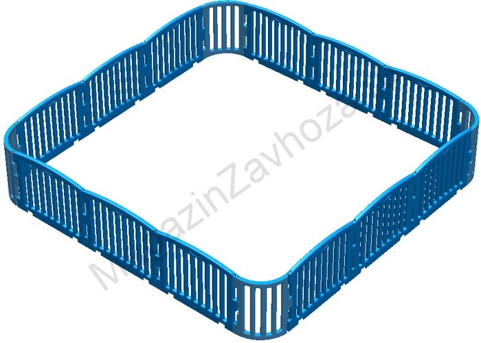 Манеж состоит из 2-х видов деталей: панель угловая и панель прямая. Панели имеют толщину 3,5 см. В названии манежей указаны внутренние размеры, внешние габариты больше на 7 см. Высота манежа -- 60 см. Модульный манеж можно просто устанавливать на пол, но лучше использовать пазловые покрытия для модульных манежей. На пазловом покрытии манеж стоит жестче и покрытие является хорошей защитой от холодных полов. Элементы пазлового покрытия сделаны из полиэтилена низкой плотности. По жесткости они близки к ламинату. Стандартный цвет желто-синий.