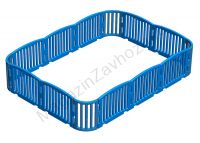 Манеж состоит из 2-х видов деталей: панель угловая и панель прямая. Панели имеют толщину 3,5 см. В названии манежей указаны внутренние размеры, внешние габариты больше на 7 см. Высота манежа -- 60 см. Модульный манеж можно просто устанавливать на пол, но лучше использовать пазловые покрытия для модульных манежей. На пазловом покрытии манеж стоит жестче и покрытие является хорошей защитой от холодных полов. Элементы пазлового покрытия сделаны из полиэтилена низкой плотности. По жесткости они близки к ламинату. Стандартный цвет желто-синий.