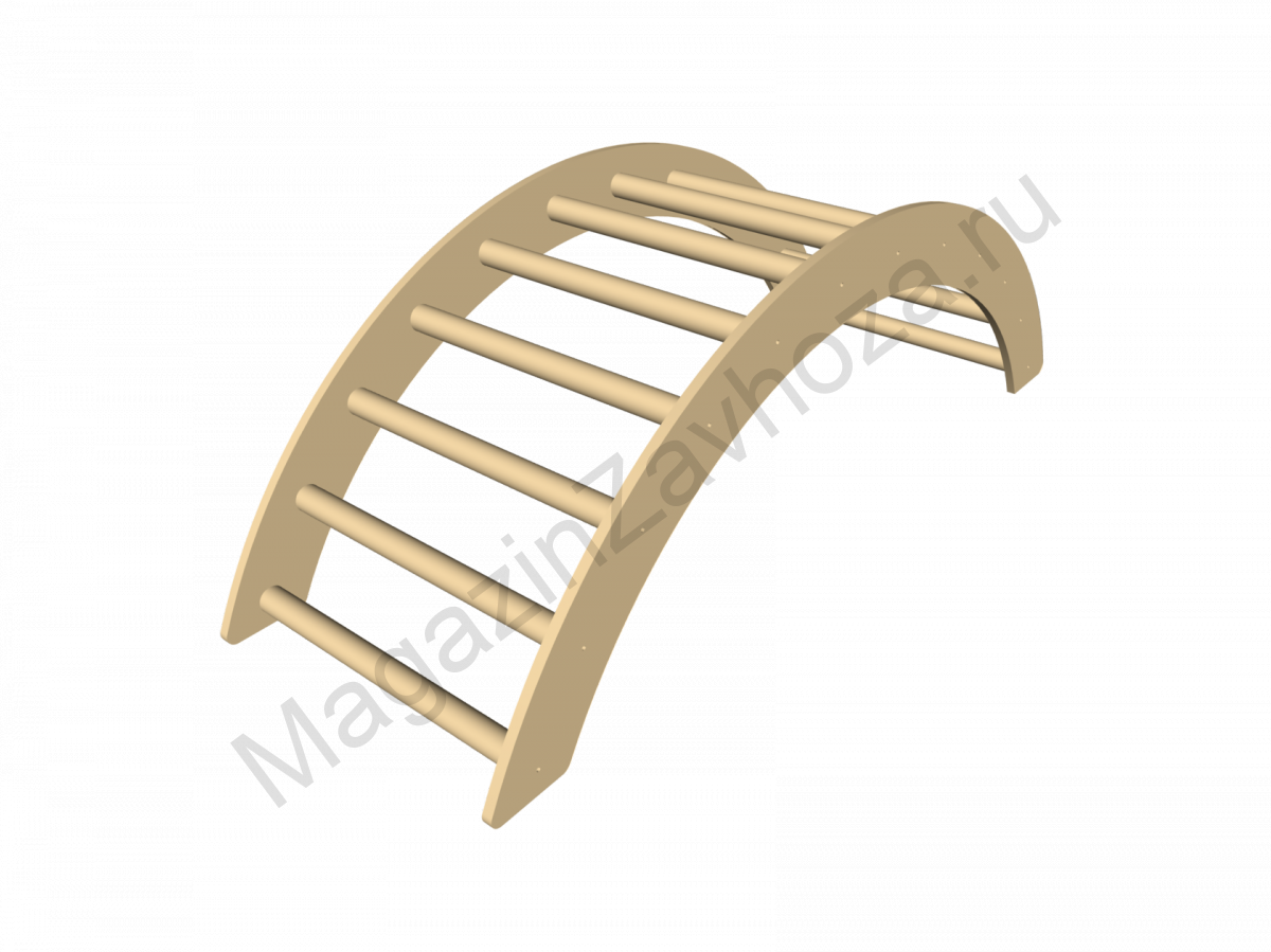 Это многоцелевое оборудование для детского спортивного зала. Может использоваться как мостик, как лестница, как качалка (в перевернутом виде). Покрытие: лак (на водной основе, без запаха, безопасны для детей). Перекладины имеют круглую форму.