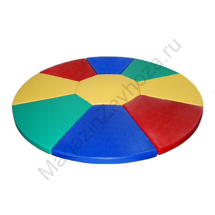 Кожзам и Поролон. Состоит из 9 модулей. Размеры: диам.1200 , 1500 , 2000мм высота 20,40,100мм Цвета: Красный,Синий,Желтый,Зеленый,Бежевый. Цвет и размеры могут быть изменены.
