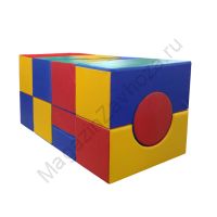 Кожзам и Поролон Упаковка:800х800х1600 Состоит из 18ти модулей. Куб: 400х400х400мм - 8 шт. Прямоугольник : 800х400х200мм - 2 шт. Прямоугольник : 400х400х200мм - 1 шт. Треугольник: 600х400х400мм - 4 шт. Арка: 800х400х400мм -2 шт. Столбик: диам.-400мм , высота-400мм - 1 шт. Цвета: Красный,Синий,Желтый,Зеленый упак.:Вес:25,6кг Объём:1,024м/куб.