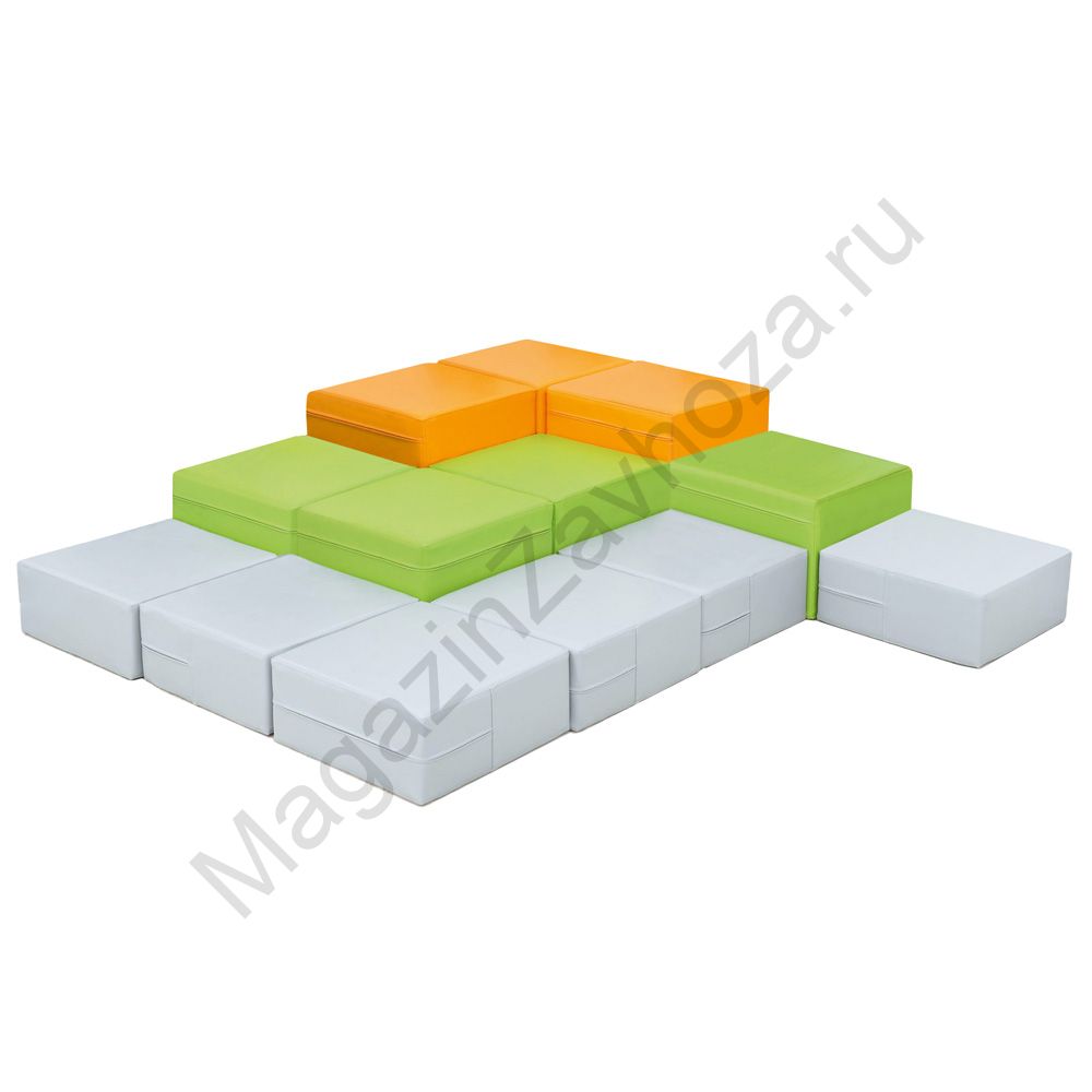 Кожзам и Поролон. Состоит из 11 модулей. Прямоугольник : 350х350х200мм - 6 шт. Прямоугольник : 350х350х300мм - 4 шт. Прямоугольник : 350х350х400мм - 3 шт. Вес: 12кг Объём:0,441м/куб.