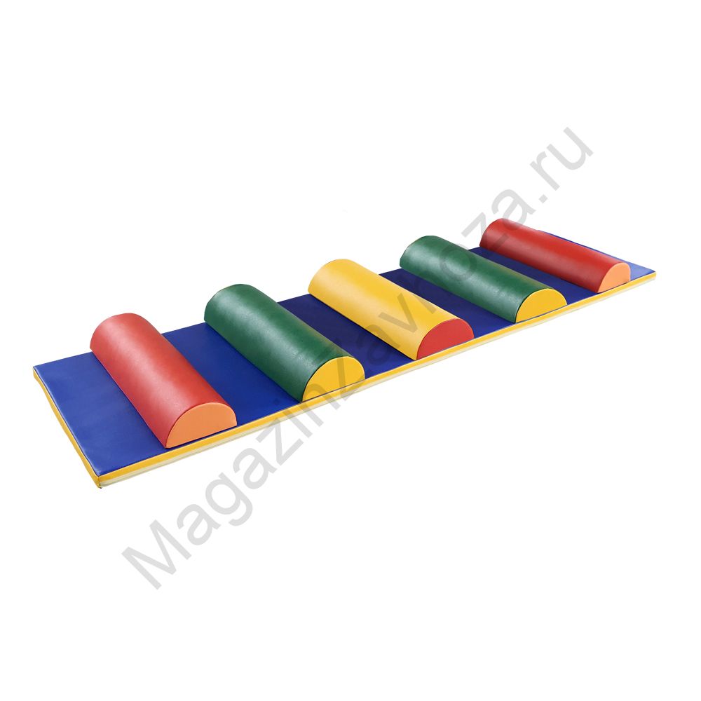Кожзам и Поролон. Цвет можно выбрать Состоит из 6ти модулей. Мат: 2200х600х40мм - 1 шт. Препятствие: 200х600х100мм - 5 шт.