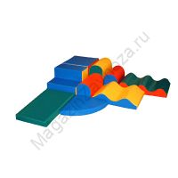 Кожзам и Поролон. Состоит из 9ти модулей. Прямоугольник : 600х600х400мм - 1 шт. Мат: 1000х600х40мм - 1 шт. Валик: 600х300х400мм - 1 шт. Валик: 600х300х300мм - 2 шт. Мат волнистый: 800х600х200мм - 1 шт. Мат волнистый: 600х600х200мм - 1 шт. Мат радиусный: 500х500х40мм - 1 шт. Ступени: 600х600х400мм - 1 шт. Цвета: Красный,Синий,Желтый,Зеленый