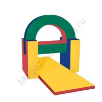 Кожзам и Поролон. Размеры: 800х2000х1300мм Состоит из 4 модулей. Полукольцо: 800х300х900 -1 шт. Подпорка: 700х300х700 -2 шт. Мат: 600х2000х40 -двойной. Цвета: Красный,Синий,Желтый,Зеленый (вес15кг 0,6м/куб