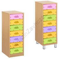 Из ЛДСП Бук или Цветного на цоколе р-ры:340х450х1100мм На метел.ножках р-ры: 340х450х1140мм Вес:23кг Объём:0,035м/куб Контейнер МДФ:300х420х100мм - 7шт. цвета - ЛАЙМ, ГОЛУБОЙ, ОРАНЖЕВЫЙ, РОЗОВЫЙ, ЖЕЛТЫЙ, ИРИС. Крепёж к стене обязателен. Направляющий полозок алюминий.