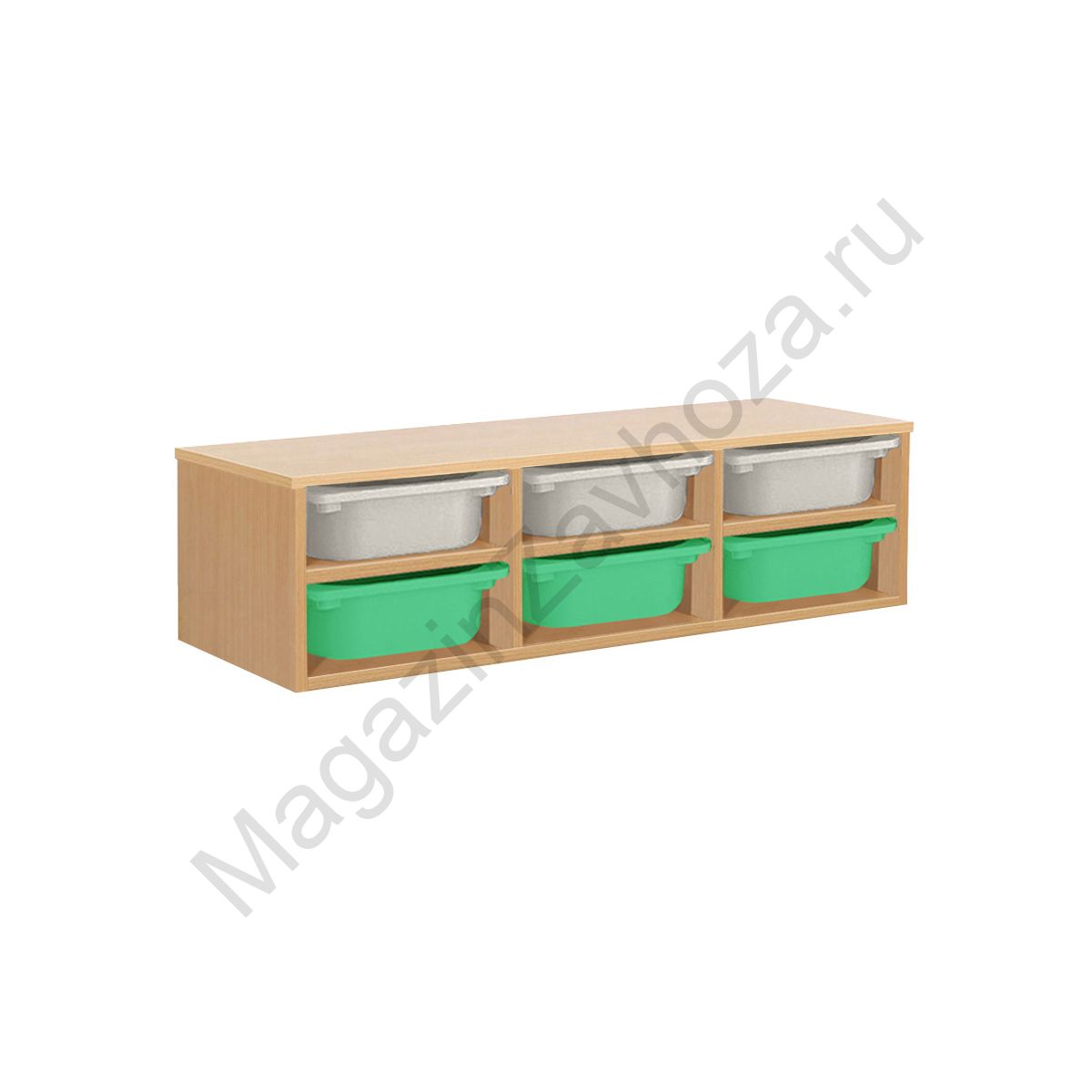 Из ЛДСП Бук или Цветного Кромка ПВХ. Размеры:976х450х300мм Вес:24кг Объём:0,07м/куб Контейнер ПВХ:300х420х100мм - 6шт. Направляющий полозок алюминий.