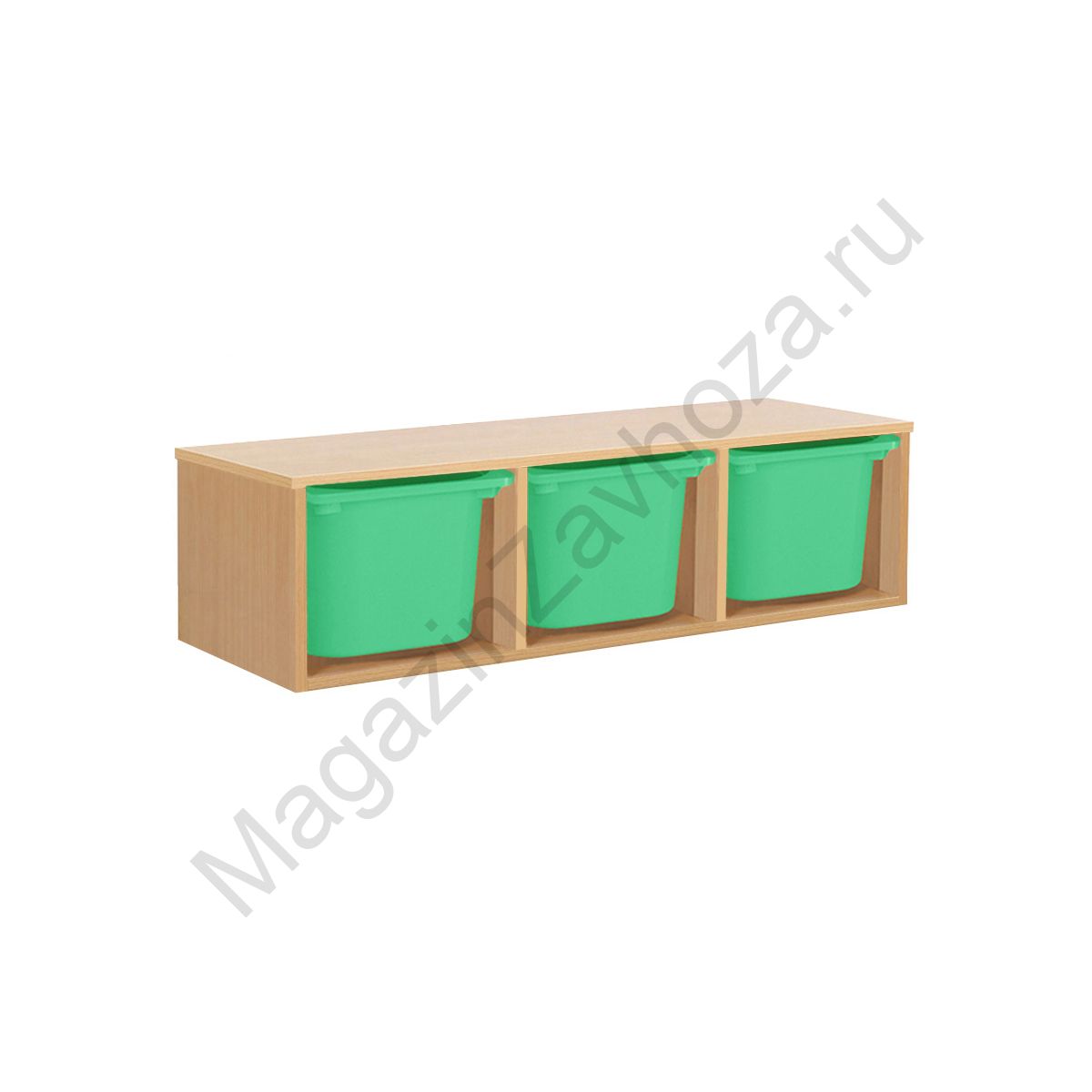 Из ЛДСП Бук или Цветного Кромка ПВХ. Размеры:976х450х300мм Вес:24кг Объём:0,07м/куб Контейнер ПВХ:300х420х230мм - 3шт. Направляющий полозок алюминий.