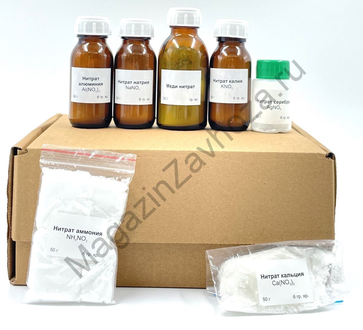 <p><strong>Этот набор  – идеальное решение для обучающих экспериментов по химии! Он создан специально для использования в школах и включает всё необходимое для успешного выполнения демонстраций и лабораторных работ согласно учебной программе.</strong></p> <p><span style="font-size: 16pt;"><strong>Состав набора: </strong></span></p> <table style="border-collapse: collapse; width: 451pt; border-width: 1px; border-spacing: 0px; margin-left: 0px; margin-right: auto;" border="1" width="600" cellspacing="0" cellpadding="0"><colgroup><col style="mso-width-source: userset; mso-width-alt: 14555; width: 299pt;" width="398"> <col style="width: 76pt;" span="2" width="101"> </colgroup> <tbody> <tr style="height: 15.0pt;"> <td class="xl69" style="height: 15pt; width: 299pt; border-width: 1px; padding: 0px;" width="398" height="20">Алюминия нитрат</td> <td class="xl69" style="width: 76pt; border-width: 1px; padding: 0px;" width="101">0,050</td> <td class="xl70" style="border-width: 1px; border-left-style: none; width: 76pt; padding: 0px;" width="101">кг.</td> </tr> <tr style="height: 15.0pt;"> <td class="xl66" style="height: 15pt; width: 299pt; border-width: 1px; padding: 0px;" width="398" height="20">Аммония нитрат</td> <td class="xl67" style="border-width: 1px; padding: 0px;">0,050</td> <td class="xl68" style="border-width: 1px; border-left-style: none; padding: 0px;">кг.</td> </tr> <tr style="height: 15.0pt;"> <td class="xl66" style="height: 15pt; width: 299pt; border-width: 1px; padding: 0px;" width="398" height="20">Калия нитрат</td> <td class="xl67" style="border-width: 1px; padding: 0px;">0,050</td> <td class="xl68" style="border-width: 1px; border-left-style: none; padding: 0px;">кг.</td> </tr> <tr style="height: 15.0pt;"> <td class="xl66" style="height: 15pt; width: 299pt; border-width: 1px; padding: 0px;" width="398" height="20">Кальция нитрат</td> <td class="xl67" style="border-width: 1px; padding: 0px;">0,050</td> <td class="xl68" style="border-width: 1px; border-left-style: none; padding: 0px;">кг.</td> </tr> <tr style="height: 15.0pt;"> <td class="xl66" style="height: 15pt; width: 299pt; border-width: 1px; padding: 0px;" width="398" height="20">Меди нитрат</td> <td class="xl67" style="border-width: 1px; padding: 0px;">0,050</td> <td class="xl68" style="border-width: 1px; border-left-style: none; padding: 0px;">кг.</td> </tr> <tr style="height: 15.0pt;"> <td class="xl69" style="height: 15pt; width: 299pt; border-width: 1px; padding: 0px;" width="398" height="20">Натрия нитрат</td> <td class="xl69" style="width: 76pt; border-width: 1px; padding: 0px;" width="101">0,050</td> <td class="xl70" style="border-width: 1px; border-left-style: none; width: 76pt; padding: 0px;" width="101">кг.</td> </tr> <tr style="height: 15.0pt;"> <td class="xl66" style="height: 15pt; width: 299pt; border-width: 1px; padding: 0px;" width="398" height="20">Серебра нитрат</td> <td class="xl67" style="border-width: 1px; padding: 0px;">0,020</td> <td class="xl68" style="border-width: 1px; border-left-style: none; padding: 0px;">кг.</td> </tr> </tbody> </table> <p> </p>