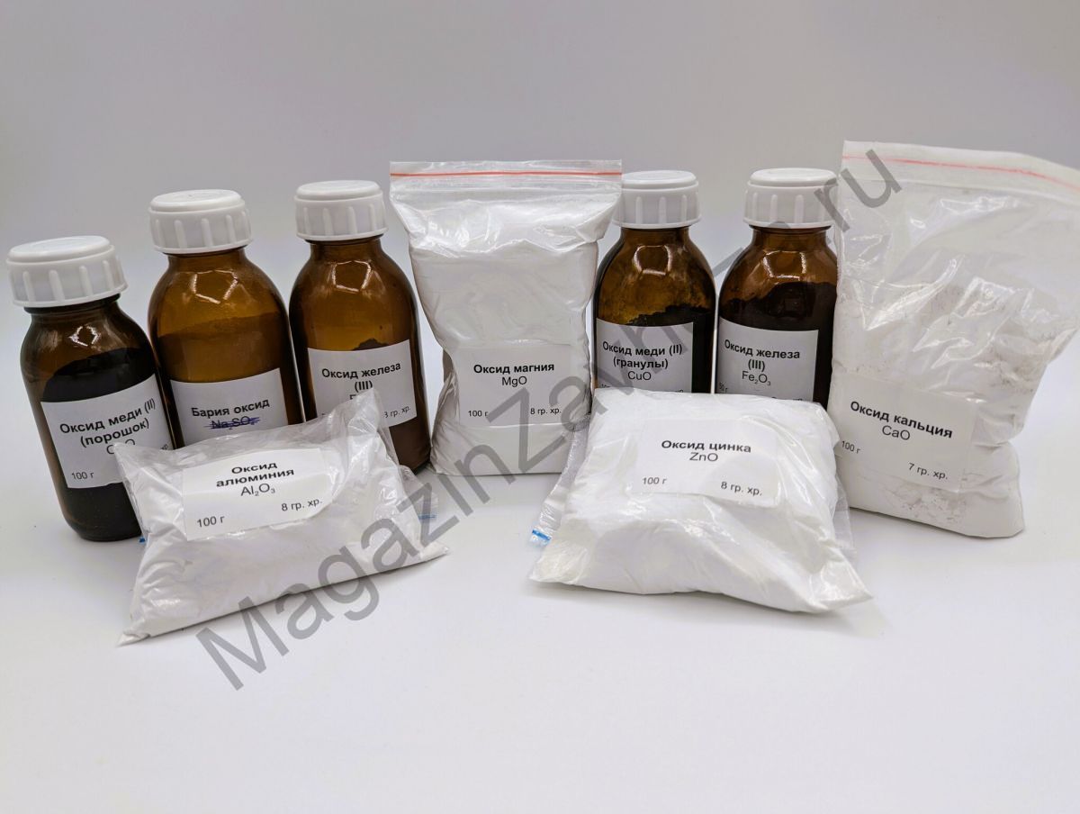 <p><strong>Этот набор  – идеальное решение для обучающих экспериментов по химии! Он создан специально для использования в школах и включает всё необходимое для успешного выполнения демонстраций и лабораторных работ согласно учебной программе.</strong></p> <p><span style="font-size: 14pt;"><strong>Состав набора:</strong></span> </p> <table style="border-collapse: collapse; width: 451pt; border-width: 1px; border-spacing: 0px; margin-left: 0px; margin-right: auto;" border="1" width="600" cellspacing="0" cellpadding="0"><colgroup><col style="mso-width-source: userset; mso-width-alt: 14555; width: 299pt;" width="398"> <col style="width: 76pt;" span="2" width="101"> </colgroup> <tbody> <tr style="height: 15.0pt;"> <td class="xl66" style="height: 15pt; width: 299pt; border-width: 1px; padding: 0px;" width="398" height="20">Алюминия оксид</td> <td class="xl67" style="width: 76pt; border-width: 1px; padding: 0px;" width="101">0,100</td> <td class="xl68" style="border-width: 1px; border-left-style: none; width: 76pt; padding: 0px;" width="101">кг.</td> </tr> <tr style="height: 15.0pt;"> <td class="xl66" style="height: 15pt; width: 299pt; border-width: 1px; padding: 0px;" width="398" height="20">Бария оксид</td> <td class="xl67" style="border-width: 1px; padding: 0px;">0,100</td> <td class="xl68" style="border-width: 1px; border-left-style: none; padding: 0px;">кг.</td> </tr> <tr style="height: 15.0pt;"> <td class="xl66" style="height: 15pt; width: 299pt; border-width: 1px; padding: 0px;" width="398" height="20">Железа (III) оксид</td> <td class="xl67" style="border-width: 1px; padding: 0px;">0,100</td> <td class="xl68" style="border-width: 1px; border-left-style: none; padding: 0px;">кг.</td> </tr> <tr style="height: 15.0pt;"> <td class="xl66" style="height: 15pt; width: 299pt; border-width: 1px; padding: 0px;" width="398" height="20">Кальция оксид</td> <td class="xl67" style="border-width: 1px; padding: 0px;">0,100</td> <td class="xl68" style="border-width: 1px; border-left-style: none; padding: 0px;">кг.</td> </tr> <tr style="height: 15.0pt;"> <td class="xl66" style="height: 15pt; width: 299pt; border-width: 1px; padding: 0px;" width="398" height="20">Магния оксид</td> <td class="xl67" style="border-width: 1px; padding: 0px;">0,100</td> <td class="xl68" style="border-width: 1px; border-left-style: none; padding: 0px;">кг.</td> </tr> <tr style="height: 15.0pt;"> <td class="xl66" style="height: 15pt; width: 299pt; border-width: 1px; padding: 0px;" width="398" height="20">Меди (II) оксид (гранулы)</td> <td class="xl67" style="border-width: 1px; padding: 0px;">0,100</td> <td class="xl68" style="border-width: 1px; border-left-style: none; padding: 0px;">кг.</td> </tr> <tr style="height: 15.0pt;"> <td class="xl66" style="height: 15pt; width: 299pt; border-width: 1px; padding: 0px;" width="398" height="20">Меди (II) оксид (порошок)</td> <td class="xl67" style="border-width: 1px; padding: 0px;">0,100</td> <td class="xl68" style="border-width: 1px; border-left-style: none; padding: 0px;">кг.</td> </tr> <tr style="height: 15.0pt;"> <td class="xl66" style="height: 15pt; width: 299pt; border-width: 1px; padding: 0px;" width="398" height="20">Цинка оксид</td> <td class="xl67" style="border-width: 1px; padding: 0px;">0,100</td> <td class="xl68" style="border-width: 1px; border-left-style: none; padding: 0px;">кг.</td> </tr> </tbody> </table>