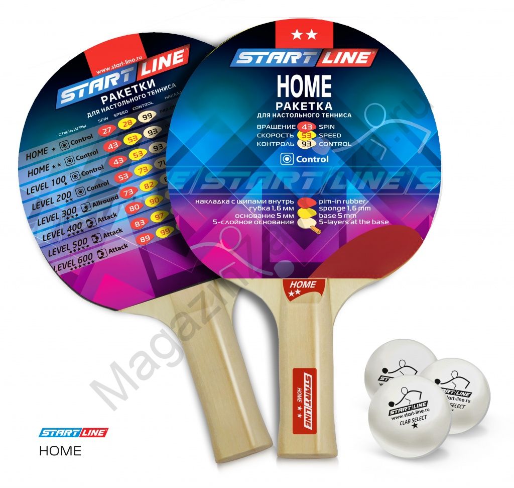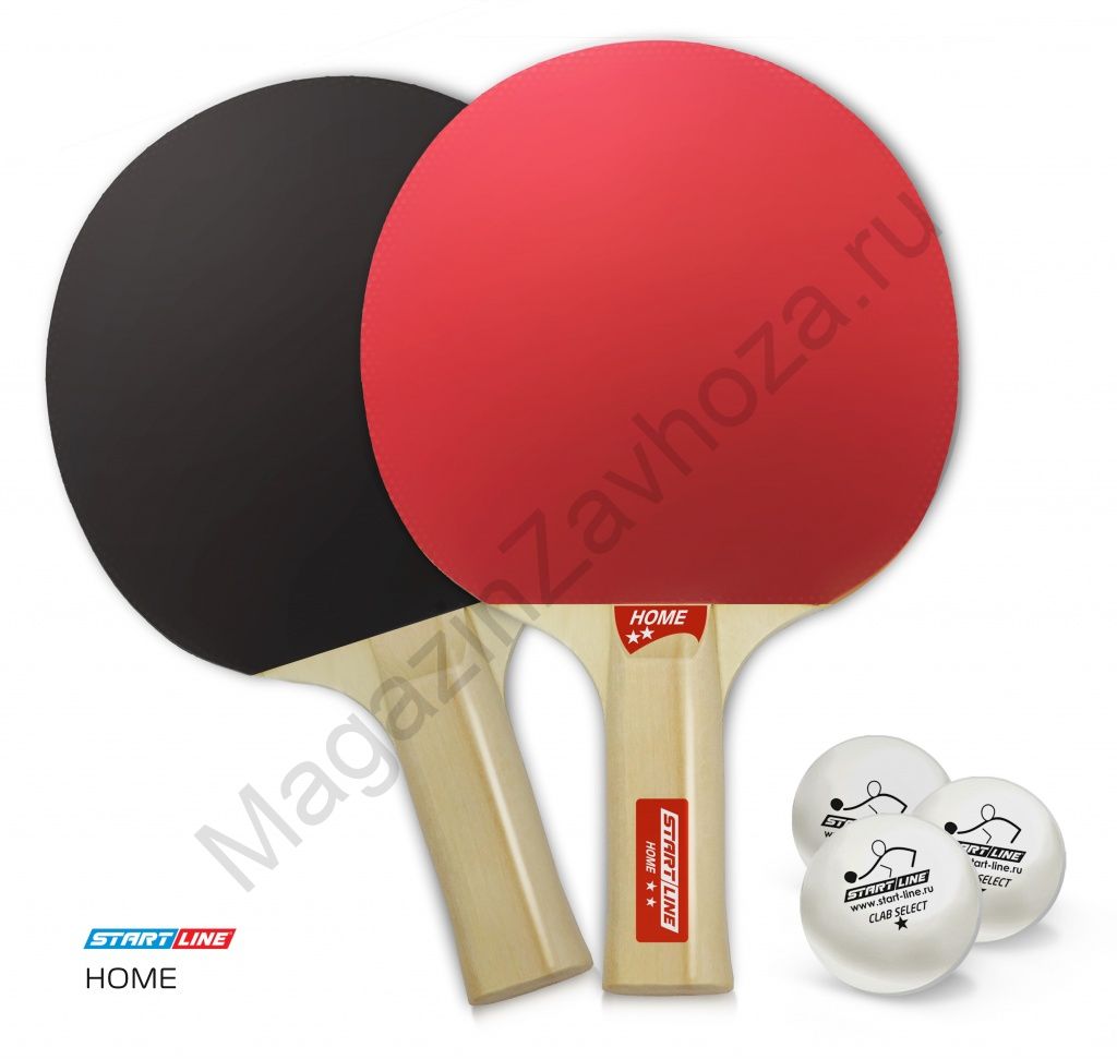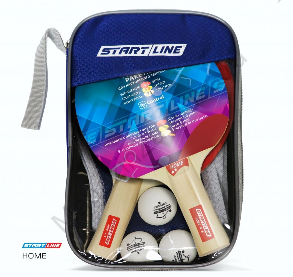 Набор START LINE: 2 Ракетки Home 2 звезды, 3 Мяча, Сетка с креплением, упаковано в сумку на молнии с ручкой.