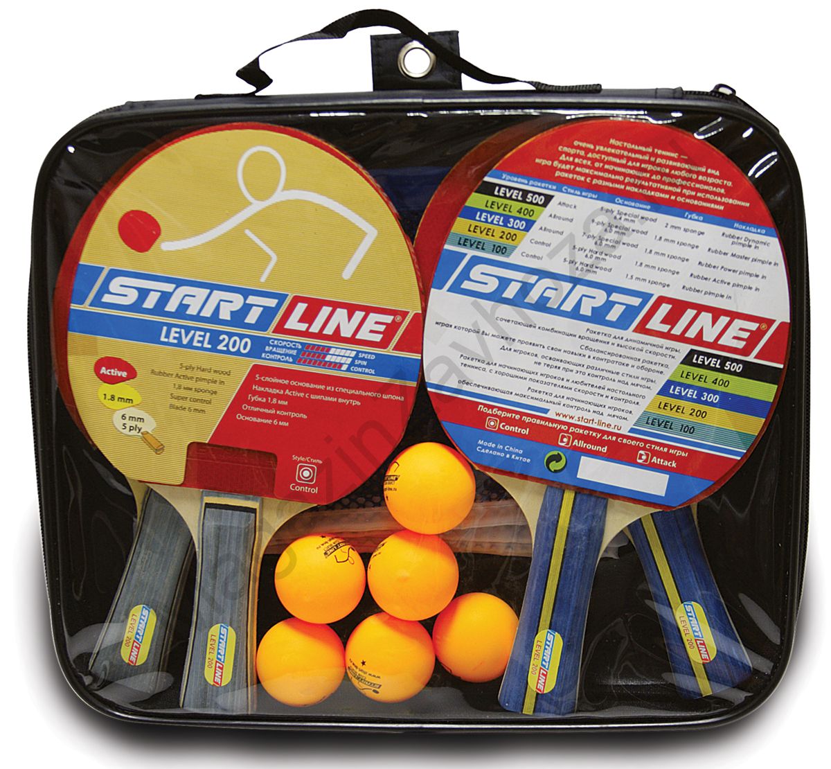 Набор START LINE: 4 Ракетки Level 200, 6 Мячей Club Select. Сетка с креплением, упаковано в сумку на молнии с ручкой.