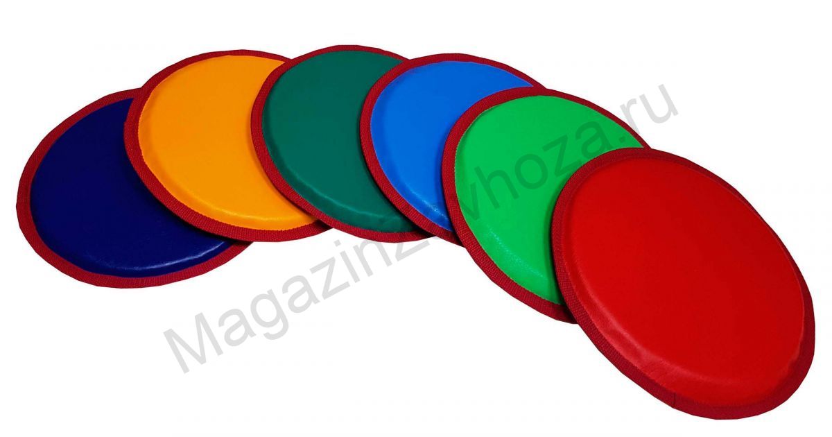 Набор амортизационных дисков используется во время занятий физкультурой. Способствует развитию координации движений и чувства равновесия. Набор состоит из шести дисков диаметром 25 см и толщиной 2 см. Края дисков прошиты лентой. Материалы изготовления: винилискожа, изолон