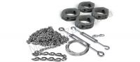 Рукоход на основе цепи, разработанный Леко, позволяет сделать длинные (до 9 м пролеты) при достаточно легком дизайне и низкой цене. В набор входит все необходимое для фиксации и натяжения цепи и троса, который служит для предотвращения перекручивания колец. Необходимое количество колец и соответствующее количество подвесных систем для них необходимо заказать отдельно. Цепь поставляется некрашеной. Ее надо красить краской "3 в 1" совместно со всей конструкцией.