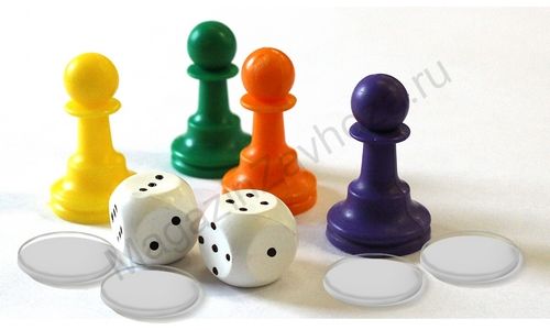 Набор из 4-х фишек с установочными шайбами и 2-мя кубиками