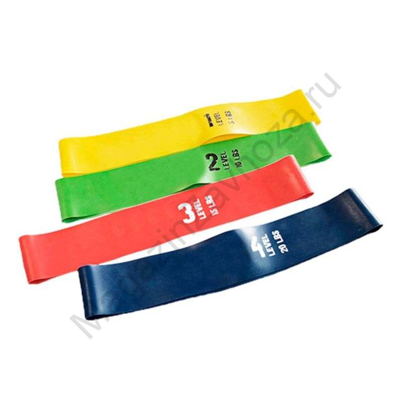 Резинки представлены в наборах из 4-х изделий, отличающихся по цветам: Желтые – мягкие, с минимальным сопротивлением, предназначенные для новичков. Зеленые – слабое сопротивление. Красные – средняя жесткость для людей с подготовкой. Синие – довольно жесткие. 2,26 кг - толщина 0,5 мм, нагрузка 5 LBS 4,53 кг - толщина 0,7 мм, нагрузка 10 LBS 6,79 кг - толщина 0,9 мм, нагрузка 15 LBS 9,06 кг - толщина 1,1 мм, нагрузка 20 LBS