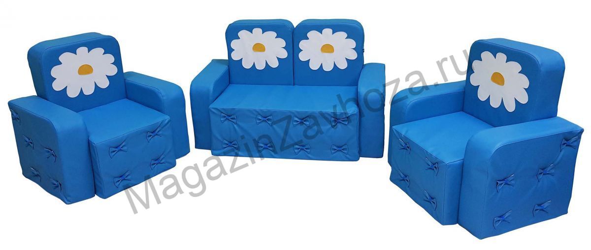 Набор мягкой мебели Машенька с аппликацией (диванчик + 2 кресла), прошивка бантики