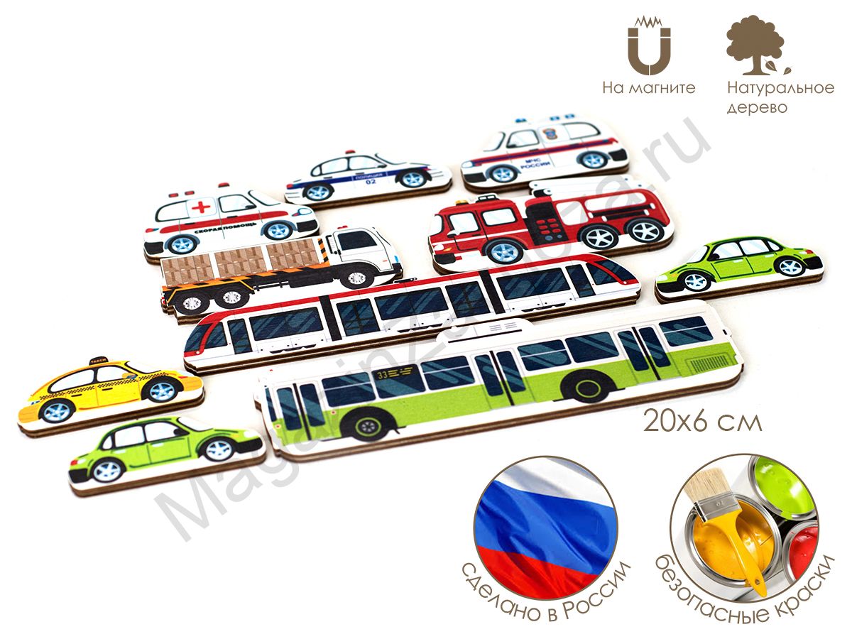 Набор тематических магнитных фигурок ТРАНСПОРТ. Серия ИЗУЧАЕМ ПДД