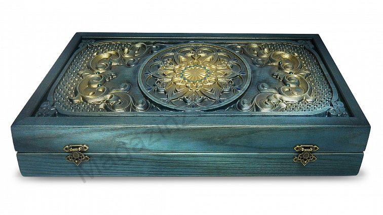 Нарды - шашки «Восток» относится к категории элитного товара и предназначена для настоящих ценителей не только игры, но и внешнего содержания. Модель изготовлена из массива ясеня,имеет отдельный ложемент для хранения фишек.. Резные элементы выполнены мастерами в ручную. Авторская выкраска отвечает восточным традициям: оттенки бирюзы в сочетании с позолотой.