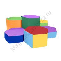 Кожзам и Поролон. Состоит из 7 модулей. Шестигранник : 600х400мм - 1 шт. Шестигранник : 600х300мм - 2 шт. Шестигранник : 600х200мм - 2 шт. Шестигранник : 600х100мм - 2 шт. Вес: 15кг Объём:0,36м/куб.