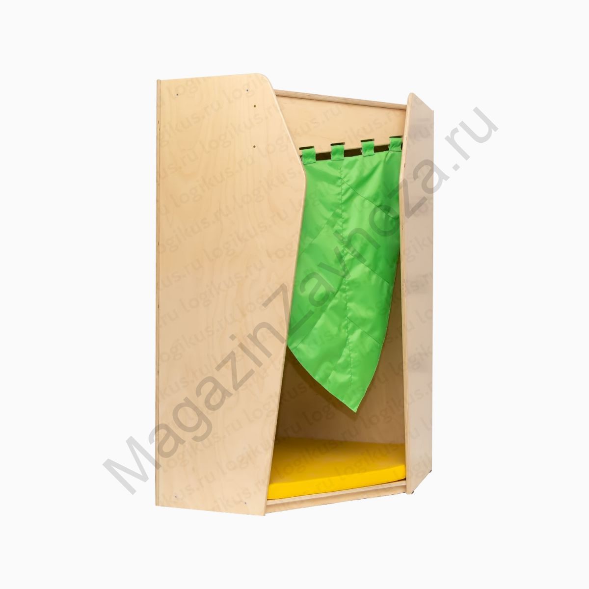Производитель: Логикус, сделано в России. Артикул: 600.04 Размер (ВхШ): 83 х 83 см, высота 150 см. Вес в упаковке: 54 кг, объем в упаковке: 0,2 м3. Комплектуется мягким матом и шторкой. Материал: фанера высшего сорта, гипоаллергенное лакокрасочное покрытие. Возраст: от 3 до 7 лет.