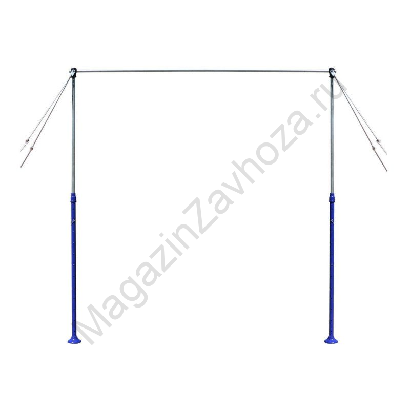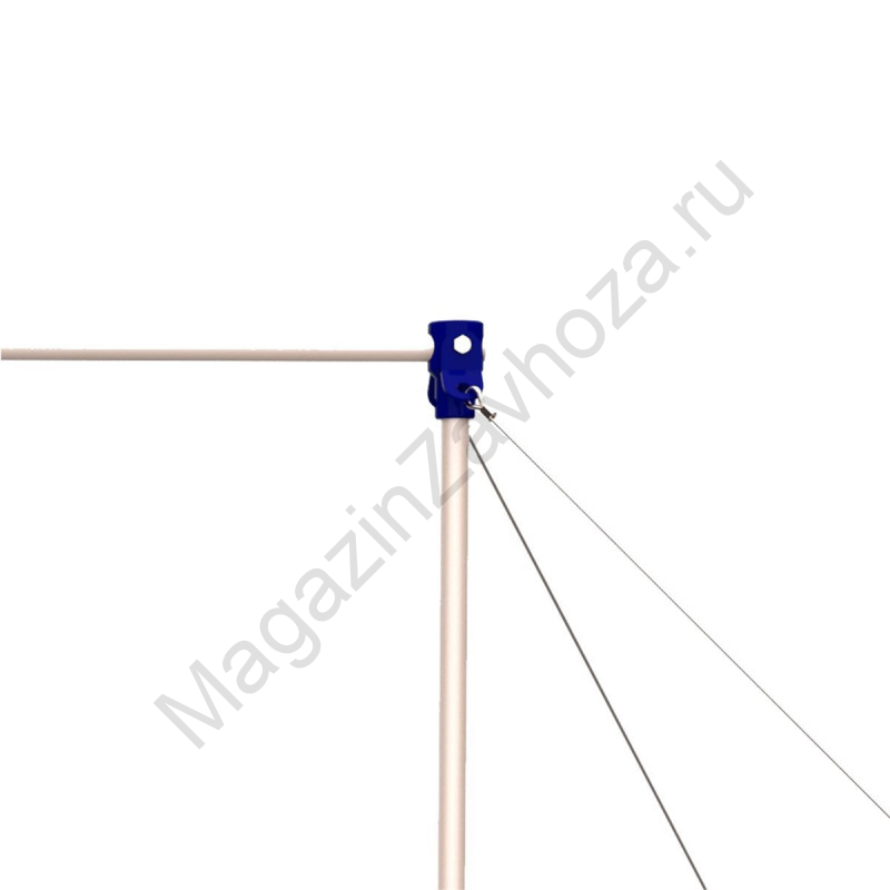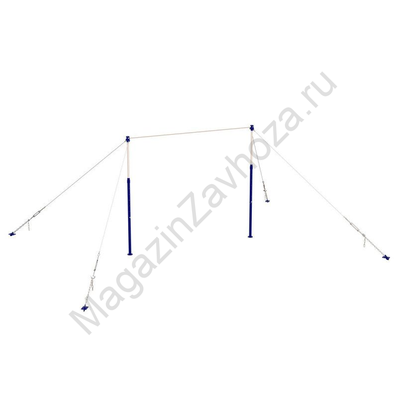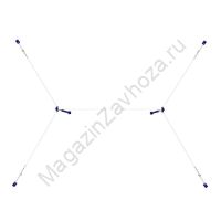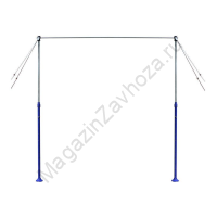 Выполнена из 2-х напольных стоек, перекладины, 4-х растяжек ø-4 мм  и 4-х закладных элементов (с прячущимся крючком для крепления растяжек к полу).