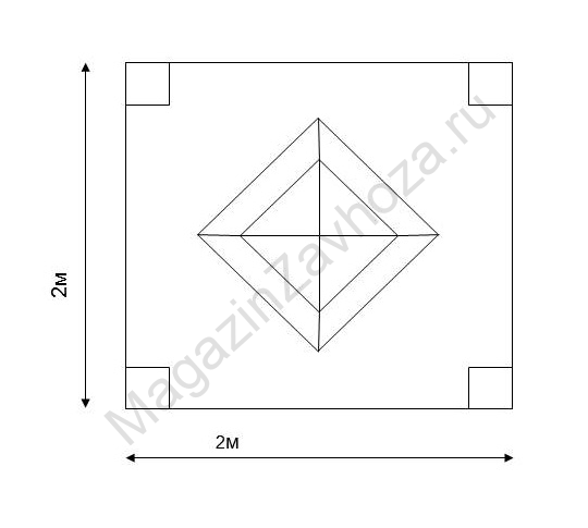 Длинна: 2000 мм Ширина: 2000 мм Высота: 2500 мм