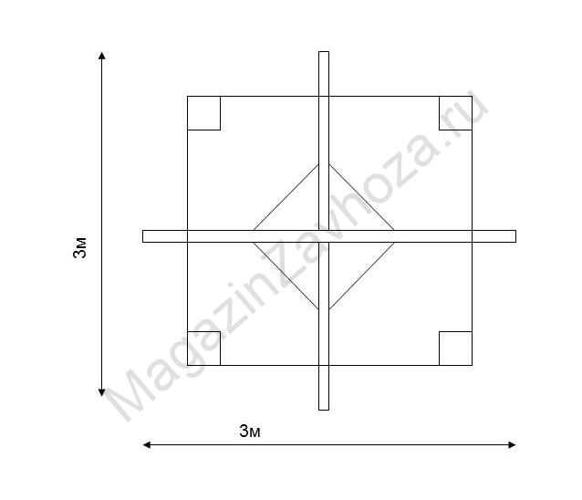 Длинна: 3000 мм Ширина: 3000 мм Высота: 2700 мм