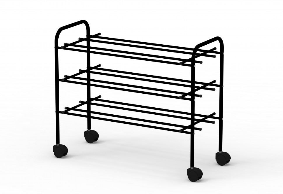 Подставка на колесах предназначена для размещения обуви. Устанавливаются на полу в помещении. Изготавливаются из металла с полимерным покрытием. Поставляются в разобранном виде. Габаритные размеры, не более: Д=715мм, Ш=325мм, В=540мм. Вес не более 3,6 кг. Максимальная нагрузка на полку - не более 2 кг. Общая нагрузка до 6 кг.