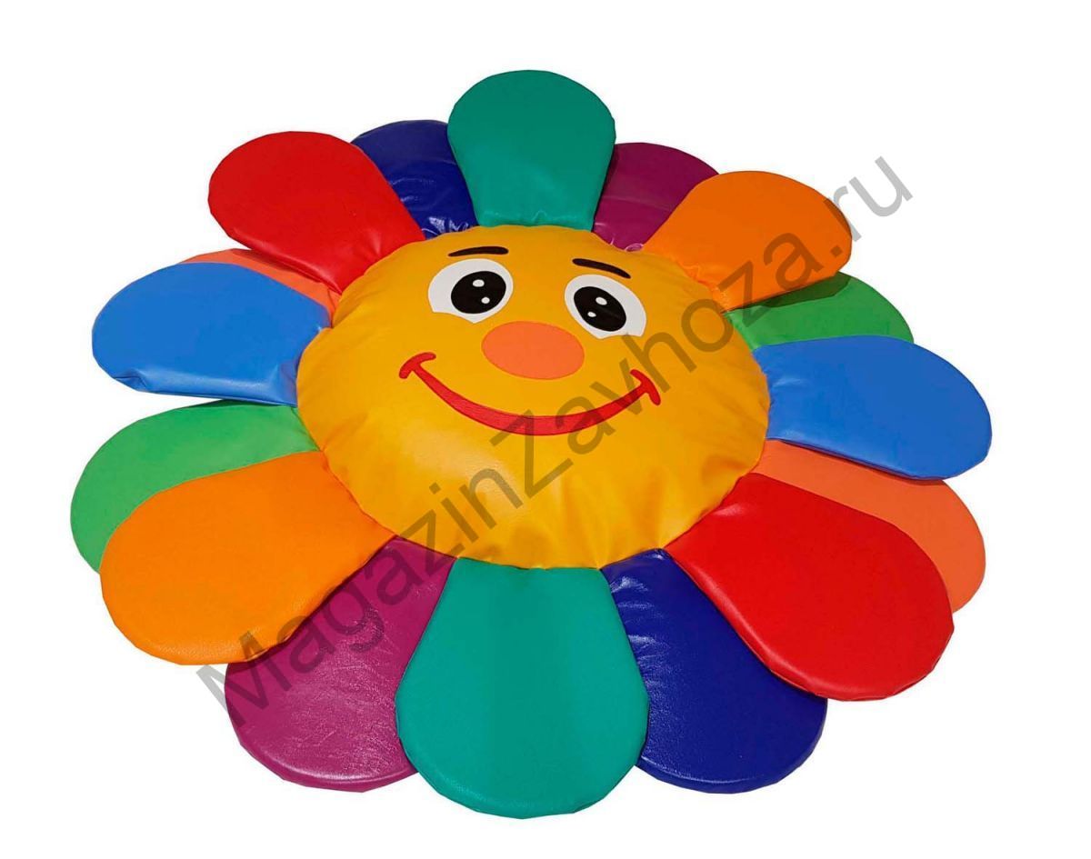 Размер (см): 120*120*10. Подушка напольная "Цветик-семицветик" выполненная в виде цветка с разноцветными лепестками. Подушка станет прекрасным украшением интерьера детской комнаты. Материалы изготовления: влагостойкая мебельная винилискожа. Набивка лепестков - поролон, сиденье - гранулы. Диаметр 120 см, высота 10 см.