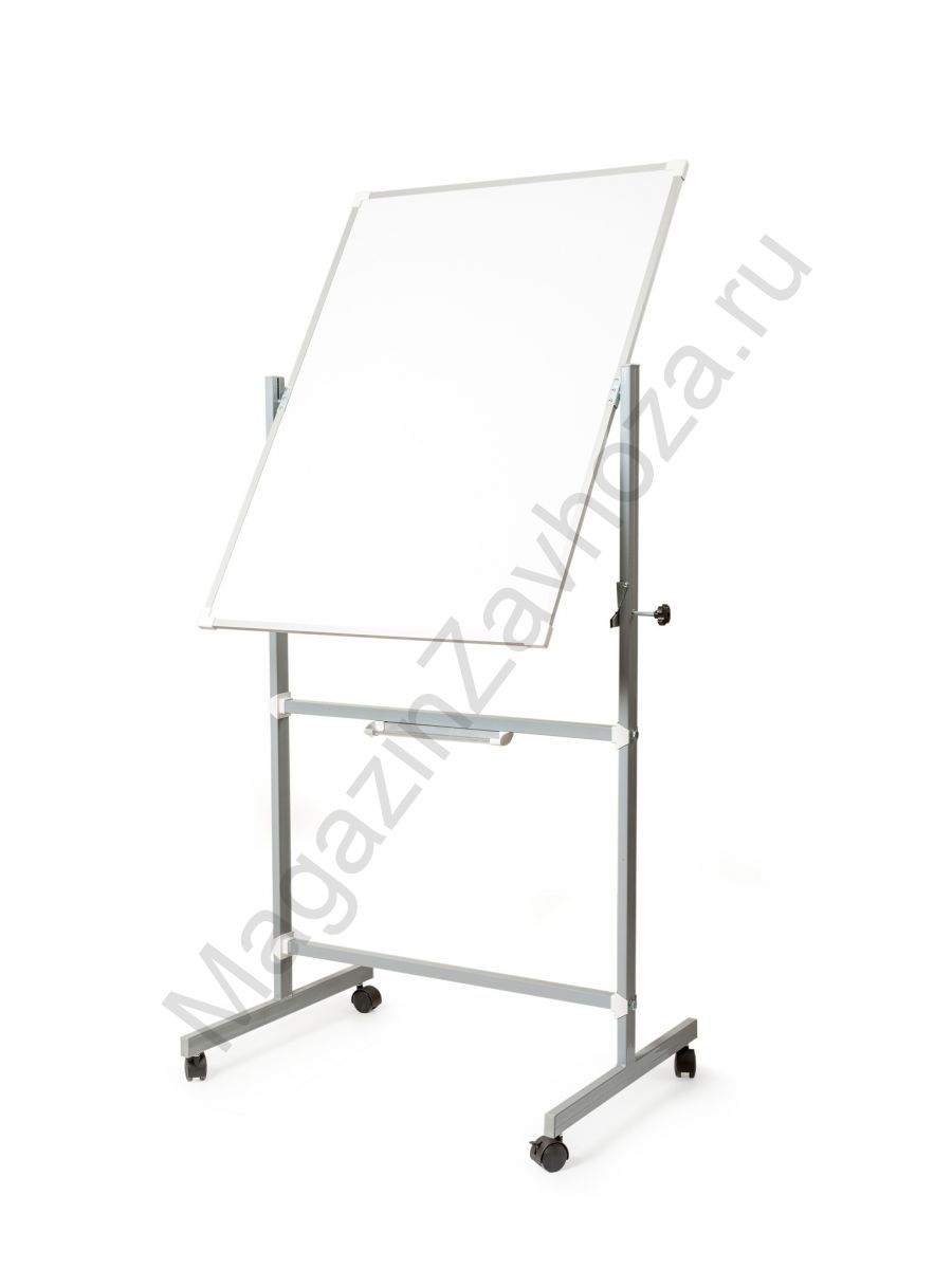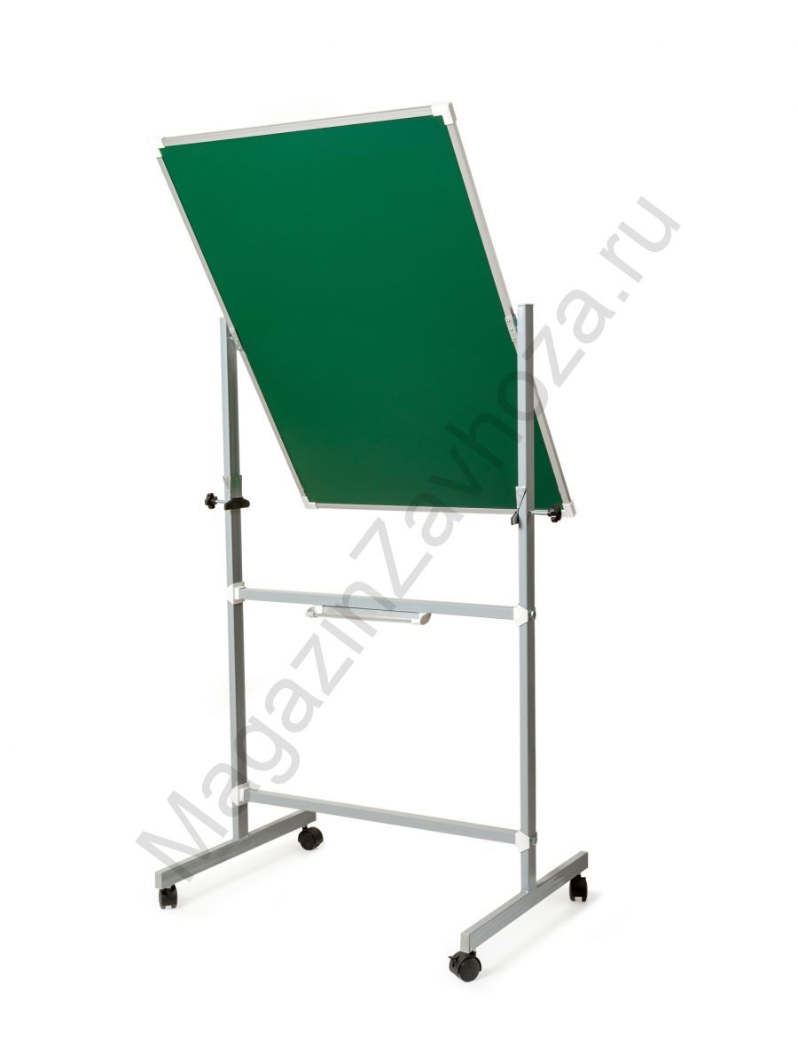 Передвижная поворотная доска установлена на металлической стойке, позволяющей ей поворачиваться вокруг горизонтальной оси. Обрамление доски — высокопрочный алюминиевый профиль, благодаря чему имеет высокую износоустойчивость и прочность. Вы также можете размещать дополнительные наглядные материалы, плакаты и использовать доску в качестве экрана для проектора. Имеется  лоток для мела/маркеров и принадлежностей.
