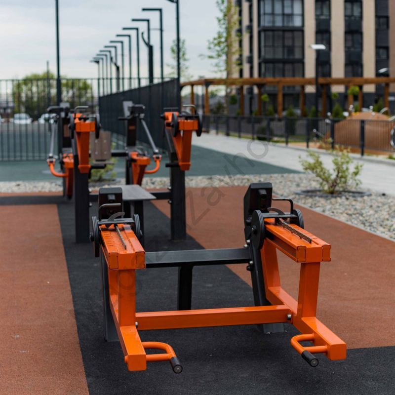 • Несущая конструкция уличного тренажера выполнена из профильных труб 140×140 с толщиной стенки 5 мм. Детали изготовлены из листового металла толщиной 8 мм, 4 мм и 3 мм.