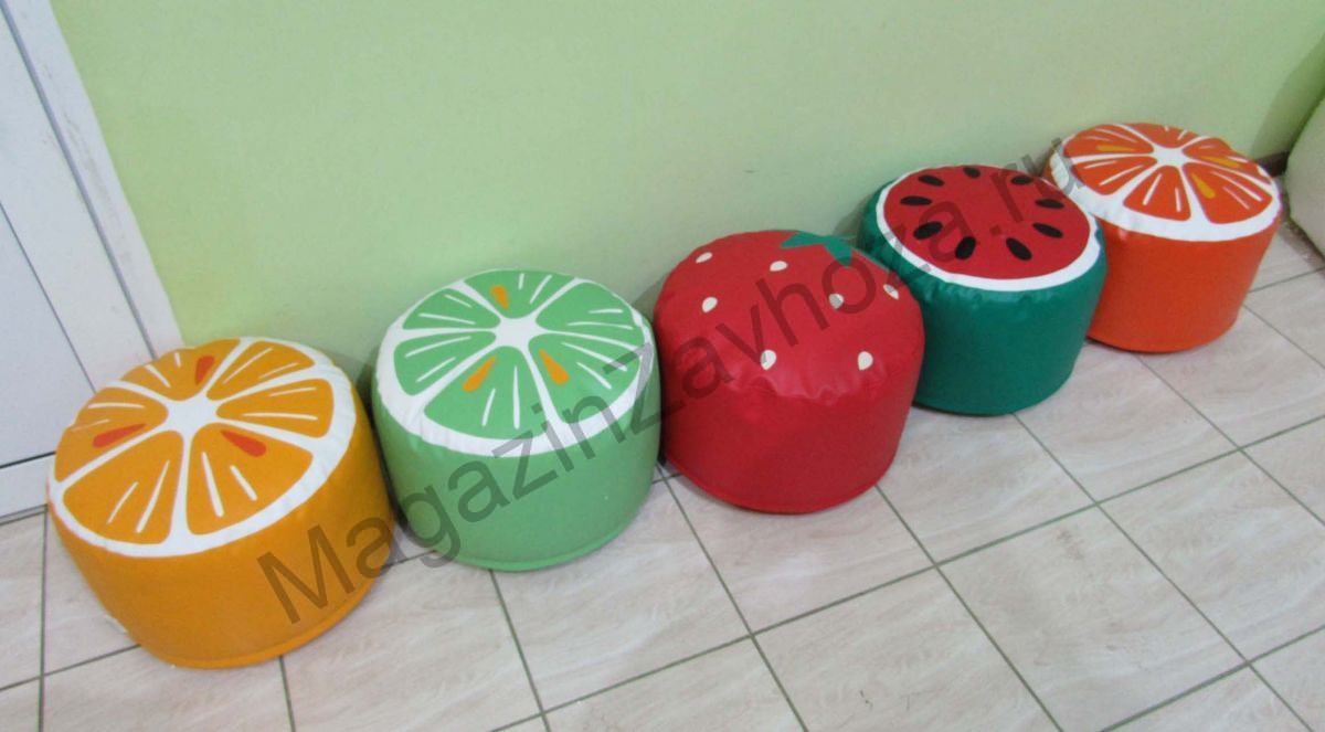 Размер (см): 40*40*25. Пуфик «Клубника» - один из представителей мебели серии «Фрукты». Он отлично впишется в интерьер и добавит ярких красок. Внешний чехол стилизован под ягоду клубники. Он изготовлен из влагостойкой мебельной винилискожи красного цвета. Весь декор тщательно прошит. В качестве наполнителя используется гранулированный пенополистирол. Пуфик легкий, ребенок может его спокойно переместить. Диаметр пуфа 40 см, высота 25 см. Отсутствие острых углов и выступающих деталей делает его безопасным для малышей. Поверхность пуфика гигиеничная и легко поддается влажной обработке.