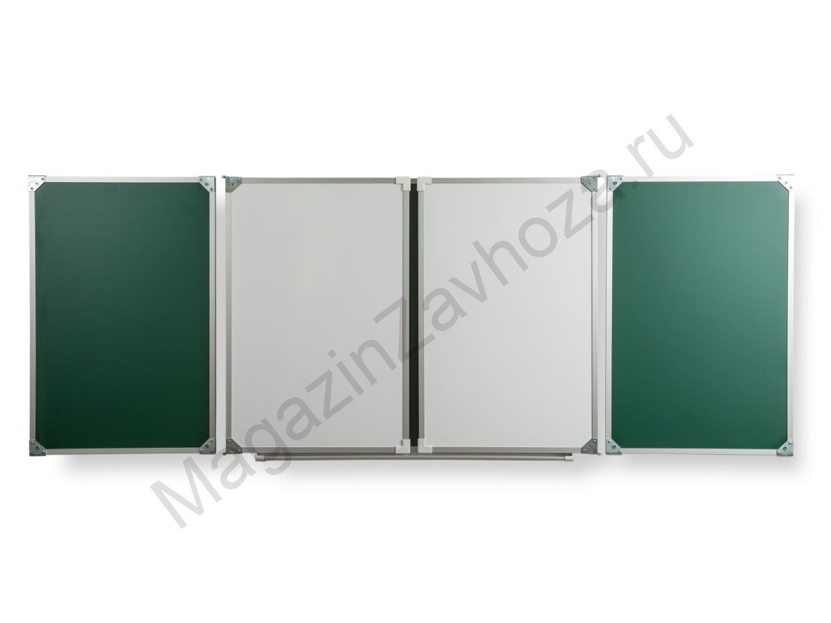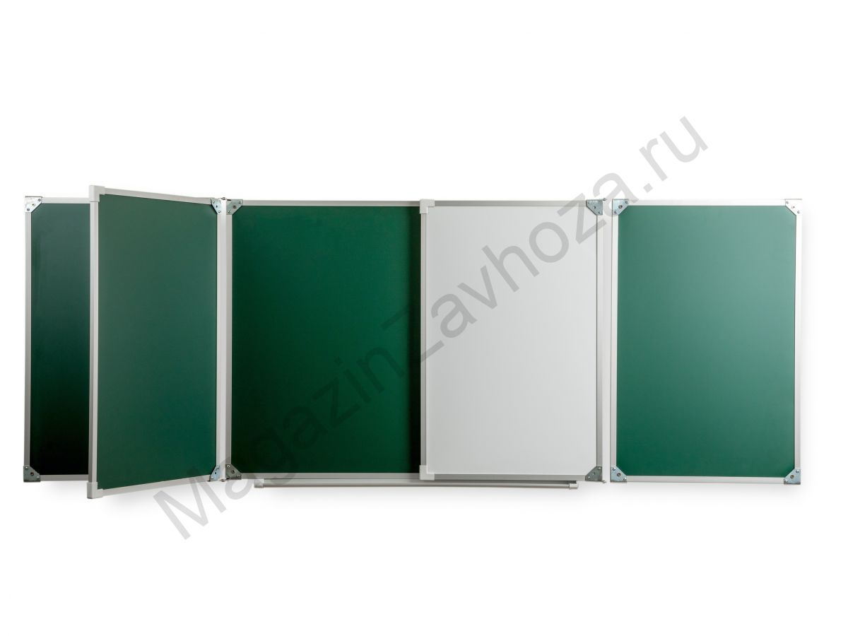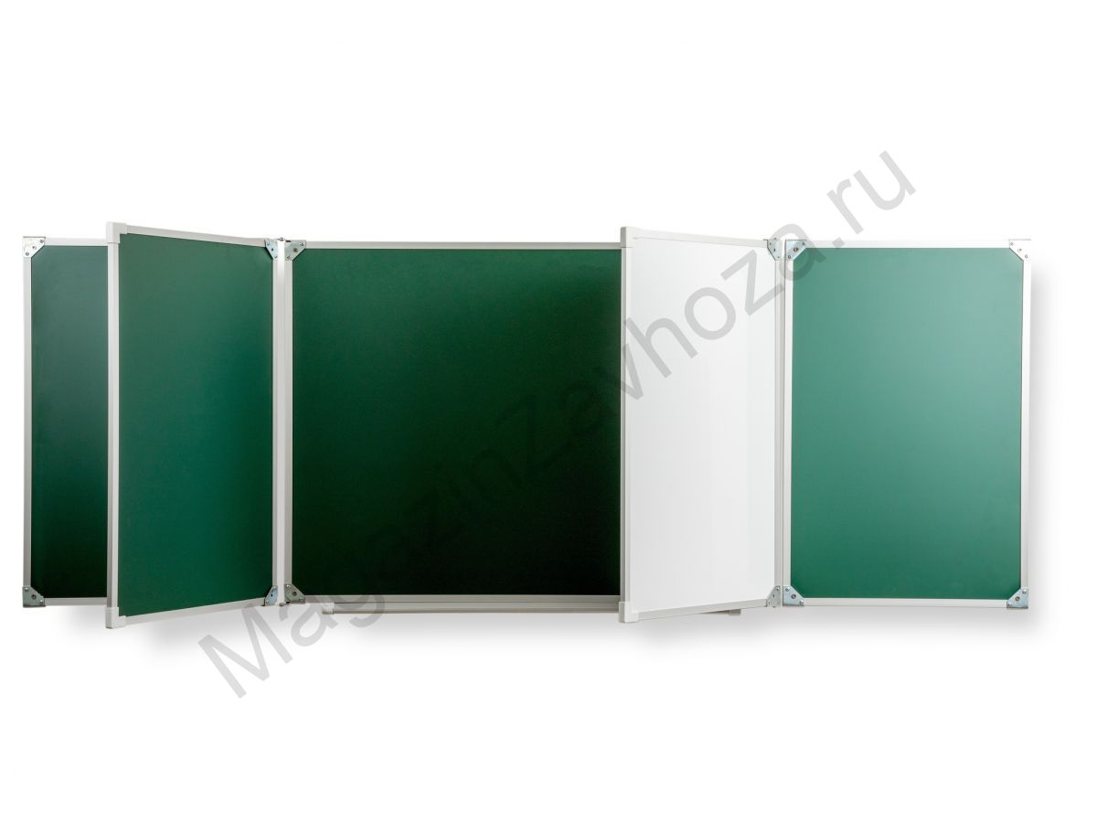 Пятиэлементная магнитная эмалированная школьная доска 3000х1000 комбинированная(мелмаркер)