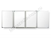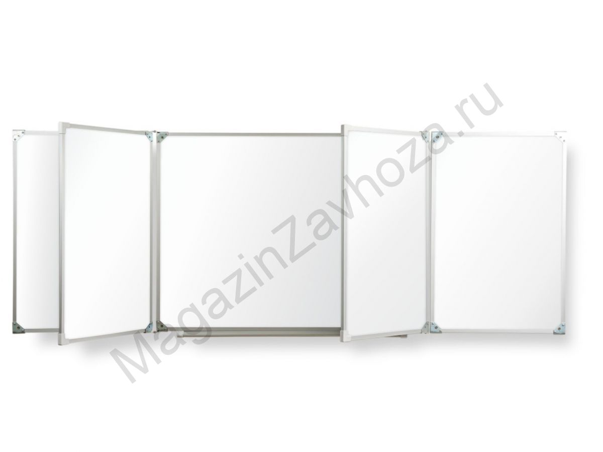 Рабочая поверхность изготовлена из стального полимерного листа, обрамление — высокопрочный алюминиевый профиль, благодаря чему доска имеет высокую износоустойчивость, прочность и надежность конструкции. 1-й элемент это центральная часть школьной доски, которая крепится к стене, а створки (2-й и 3-й элементы), могут независимо открываться и закрываться от плоскости центральной части доски до плоскости стены. Также есть статичные 4 и 5 элементные. Петли многоэлементных досок рассчитаны на нагрузку свыше 100 кг. Имеется лоток для мела/маркера и принадлежностей.
