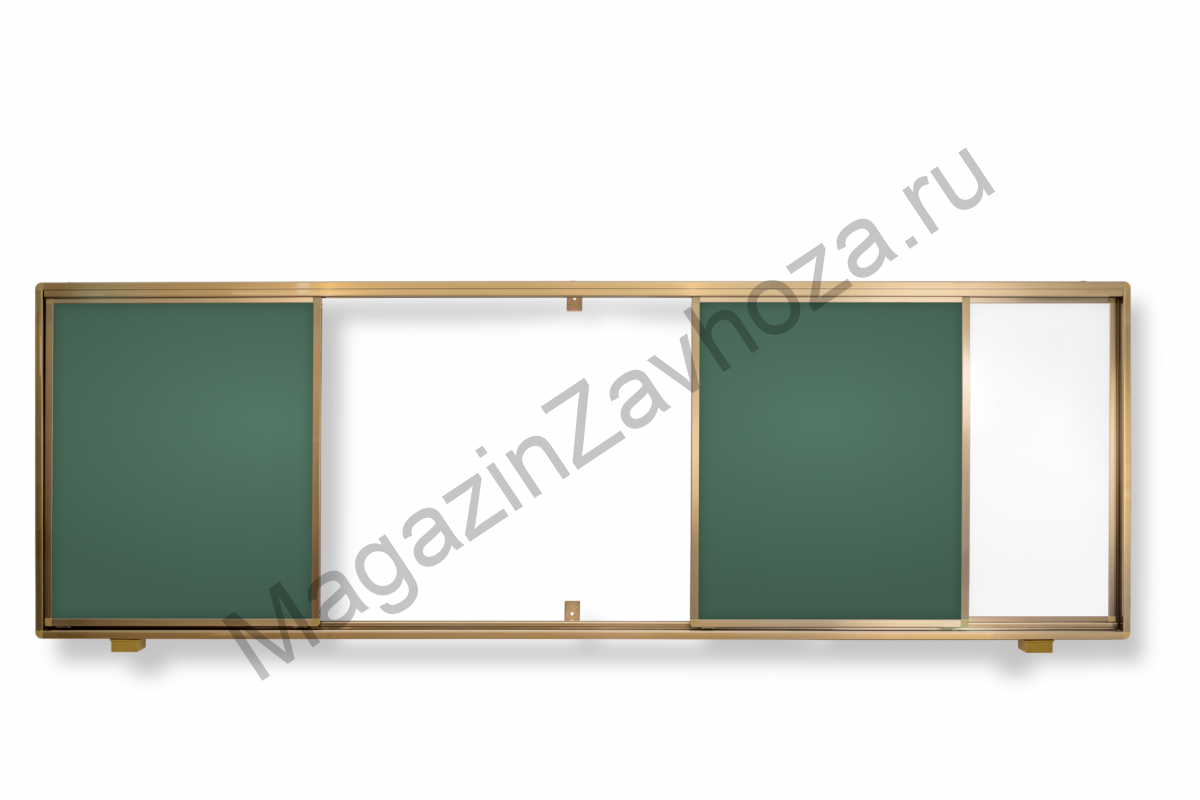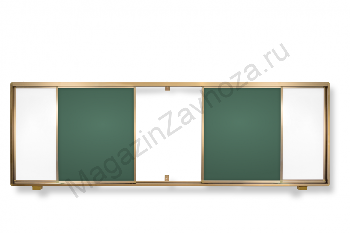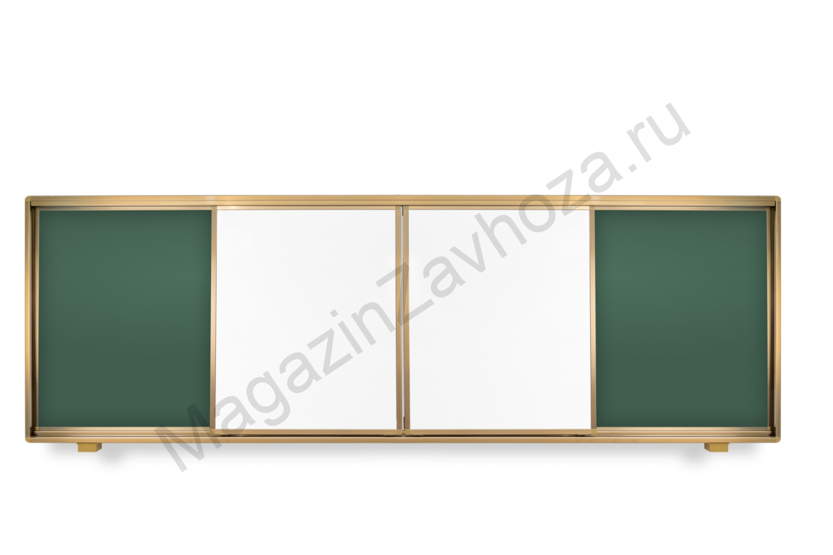 Система может комплектоваться различными комбинациями поверхностей: как меловыми, так и маркерными. Металлическая основа доски позволяет крепить к ней учебные наглядные пособия при помощи магнитов.