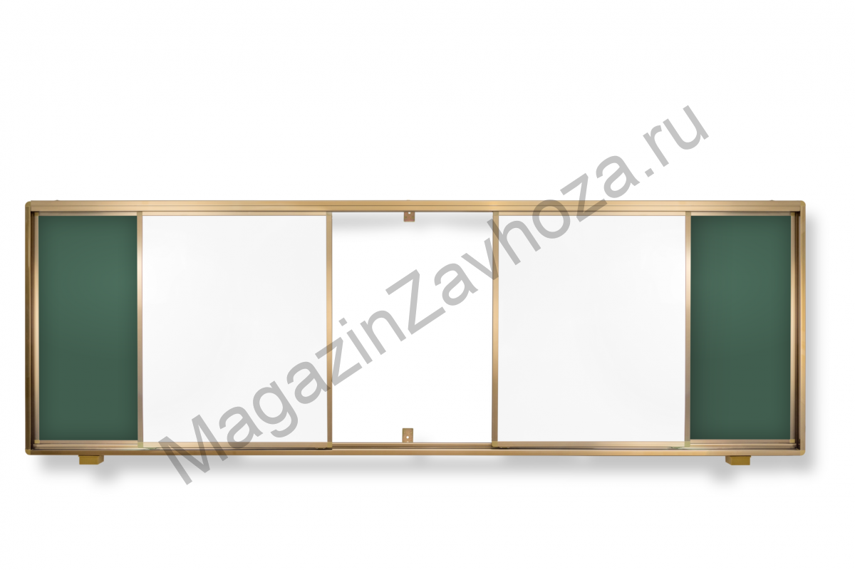 Состоит из 4-х поверхностей, две фиксируются к стене и две свободно перемещаются по рельсовой системе перекрывая установленную в центре интерактивную панель.