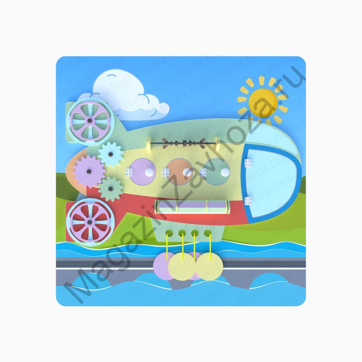 Бизиборд "Дирижабль", закрепленный на красочную полноцветную панель. Прекрасный способ оформить помещение ДОУ с пользой и не занимая лишнего места. Обратите внимание на всю серию "Транспорт" - 6 панелей с наземным, водным, воздушным транспортом в едином стиле для максимального развивающего эффекта! Развивающая панель сделана с заботой о безопасности и экологичности: натуральные материалы высшего качества - не выделяют вредных испарений. качественная обработка дерева на современном оборудовании и ручная проверка перед упаковкой - залог отсутствия дефектов и зазубрин. полноцветная печать сделана на латексном принтере с помощью краски на водной основе. Абсолютно безвредна, разрешена для применения даже в больницах!