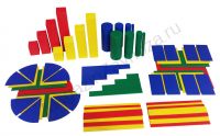 Детали в каждом комплекте дети раскладывают в порядке возрастающей или в порядке убывающей величины. При сравнении предметов по длине, их раскладывают друг под другом, по ширине, высоте, толщине – рядом друг с другом. Все комплекты используются во всех возрастных группах с учетом требований программы.