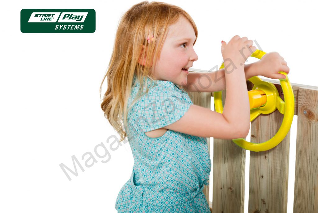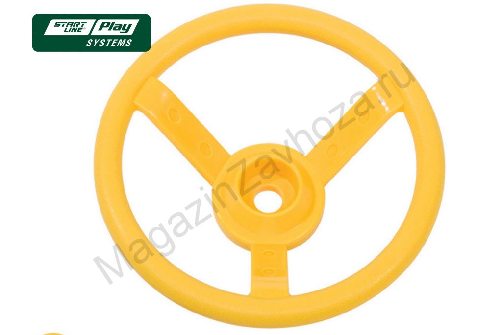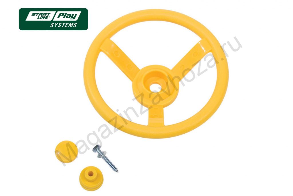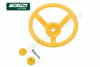 Руль желтый - сплошной отлив ударопрочного пластика HIPS. Вариант с гудком при нажатии имитирует автомобильный гудок. В комплекте саморез с шестигранной головкой, шайба и заглушка.
