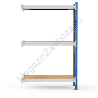 • Дополнительная секция состоит из комплекта окрашенных рам, балок и полок. • Дополнительная секция присоединяется к раме основного стеллажа. Нагрузочные характеристики при этом сохраняются. • Технология крепления балки к стойкам - безболтовая, на зацепах. Такой подход значительно уменьшает время сборки и установки стеллажа. Конструкция позволяет менять положение полок без демонтажа всей секции. • Ярус хранения включает в себя две продольные балки, соединенные между собой поперечной балкой и настил из ДСП. • Допустимое минимальное количество ярусов хранения на каждую секцию - не менее трёх штук. • Для предотвращения случайного съёма балок яруса с рам предусмотрен фиксатор, устанавливаемый в конце сборки в прямоугольное отверстие каждого зацепа. • Стеллаж комплектуется необходимой фурнитурой для сборки. • Стойки окрашены полимерной (порошковой) краской RAL 5015 синего цвета или RAL7035 светло-серого цвета, балки окрашены в RAL7035 светло-серого цвета.