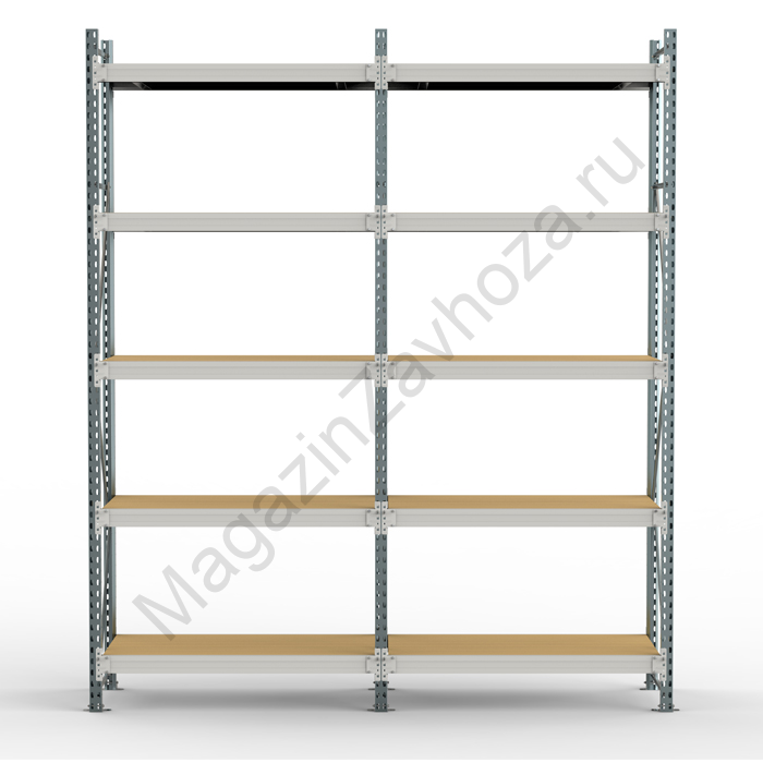 • Дополнительная секция состоит из комплекта оцинкованных рам, балок и полок. • Дополнительная секция присоединяется к раме основного стеллажа. Нагрузочные характеристики при этом сохраняются. • Технология крепления балки к стойкам - безболтовая, на зацепах. Такой подход значительно уменьшает время сборки и установки стеллажа. Конструкция позволяет менять положение полок без демонтажа всей секции. • Ярус хранения включает в себя две продольные балки, соединенные между собой поперечной балкой и настил из ДСП. • Допустимое минимальное количество ярусов хранения на каждую секцию - не менее трёх штук. • Для предотвращения случайного съёма балок яруса с рам предусмотрен фиксатор, устанавливаемый в конце сборки в прямоугольное отверстие каждого зацепа. • Стеллаж комплектуется необходимой фурнитурой для сборки. • Стойки окрашены полимерной (порошковой) краской RAL 5015 синего цвета или RAL7035 светло-серого цвета, балки окрашены в RAL7035 светло-серого цвета.