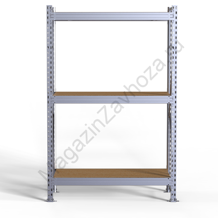 • Среднегрузовой стеллаж SGR-V-Zn-ДСП состоит из рам (сборная конструкция из двух оцинкованных стоек, соединенных горизонтальными и наклонными стяжками), продольных балок с креплением к стойкам на зацепах и настилов из ДСП, размещенных на продольных балках • Технология крепления балки к стойкам - безболтовая, на зацепах. Такой подход значительно уменьшает время сборки и установки стеллажа. Конструкция позволяет менять положение полок без демонтажа всей секции. • Ярус хранения включает в себя две продольные балки, соединенные между собой поперечными балками и настил из ДСП. • К раме стеллажа можно присоединить дополнительные секции на зацеп. Нагрузочные характеристики при добавлении доп.секций сохраняются • Допустимое минимальное количество ярусов хранения на каждую секцию - не менее трёх штук. • Для предотвращения случайного съёма балок яруса с рам предусмотрен фиксатор, устанавливаемый в конце сборки в прямоугольное отверстие каждого зацепа. • Каждая стойка снабжена металлическим подпятником на болтовом креплении. • Стеллаж комплектуется необходимой фурнитурой для сборки. • Стойки окрашены полимерной (порошковой) краской RAL 5015 синего цвета или RAL7035 светло-серого цвета, балки окрашены в RAL7035 светло-серого цвета.