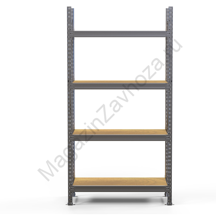 • Среднегрузовой стеллаж SGR-V-Zn-ДСП состоит из рам (сборная конструкция из двух оцинкованных стоек, соединенных горизонтальными и наклонными стяжками), продольных балок с креплением к стойкам на зацепах и настилов из ДСП, размещенных на продольных балках • Технология крепления балки к стойкам - безболтовая, на зацепах. Такой подход значительно уменьшает время сборки и установки стеллажа. Конструкция позволяет менять положение полок без демонтажа всей секции. • Ярус хранения включает в себя две продольные балки, соединенные между собой поперечными балками и настил из ДСП. • К раме стеллажа можно присоединить дополнительные секции на зацеп. Нагрузочные характеристики при добавлении доп.секций сохраняются • Допустимое минимальное количество ярусов хранения на каждую секцию - не менее трёх штук. • Для предотвращения случайного съёма балок яруса с рам предусмотрен фиксатор, устанавливаемый в конце сборки в прямоугольное отверстие каждого зацепа. • Каждая стойка снабжена металлическим подпятником на болтовом креплении. • Стеллаж комплектуется необходимой фурнитурой для сборки. • Стойки окрашены полимерной (порошковой) краской RAL 5015 синего цвета или RAL7035 светло-серого цвета, балки окрашены в RAL7035 светло-серого цвета.
