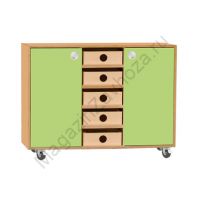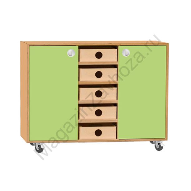 ЛДСП Корпус БУК , фасады и задник ЛАЙМ Размеры:976х450х1000мм Вес:66кг Объём:0,2м/куб Контейнер ФАНЕРА, лак или краска ЛАЙМ : 400х300х100мм - 5шт. Установлены усиленные поворотные прорезиненные колеса. 2 из них со стопором (тормозом).