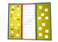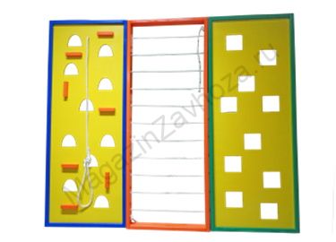 Детский скалодром изготовлен из массива дерева и берёзовый фанеры. Он представляет собой имитацию поверхности скалы. Скалодром является альтернативой шведской стенки и превосходит её по своим возможностям. Дети могут передвигаться вверх и вниз, вправо и влево.