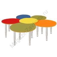 Цвет можно выбрать в каталоге ЦВЕТА МАТЕРИАЛОВ. Диаметр: 1800мм Состоит из 6-ти столиков. Покрытие ножек: полимер СЕРЫЙ или ЦВЕТНОЙ Регулировка ножек: 400-580мм Вес:37кг Объём:0,07м/куб